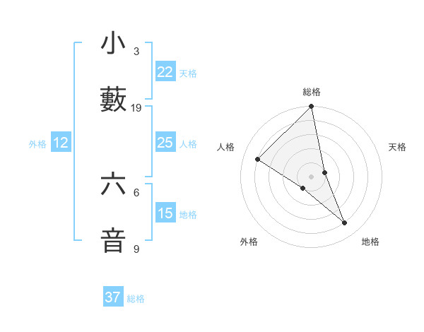 小藪 六音さんの外格は12画の1点!