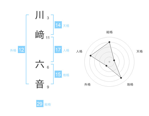 川﨑 六音さんの総格は29画の4点!