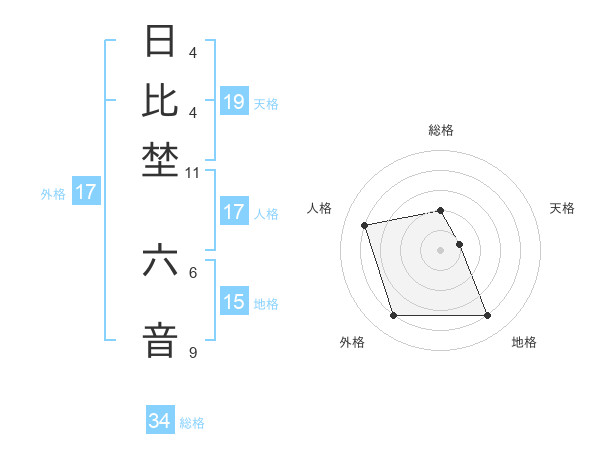 日比埜 六音さんの外格は17画の4点!