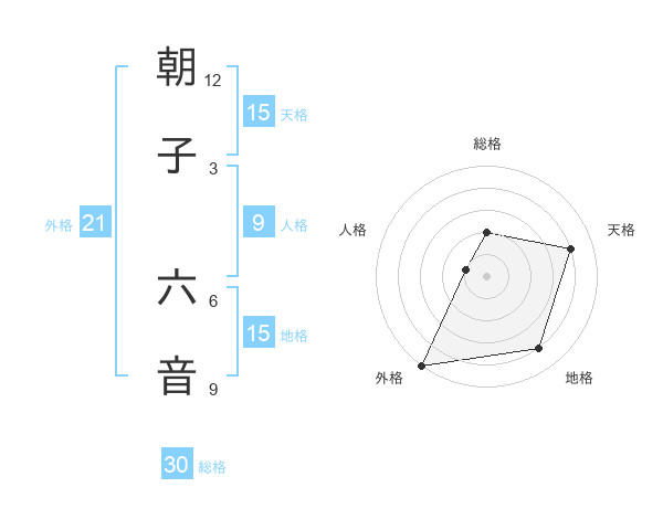 朝子 六音さんの総格は30画の2点!