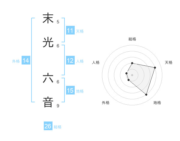 末光 六音さんを姓名の画数から五運を鑑定