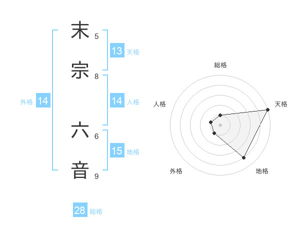 家系が持つ宿命的な運勢を表します。祖先から受け継いだ苗字ですので自分の力が及びません。家柄を象徴します。