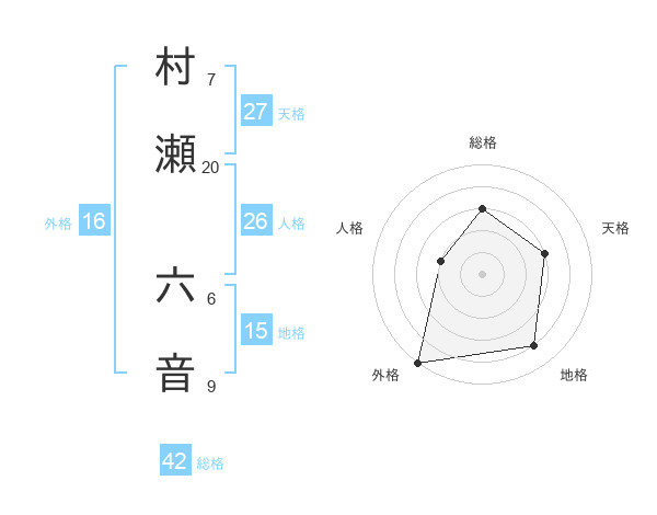 村瀬 六音さんの外格は16画の5点!