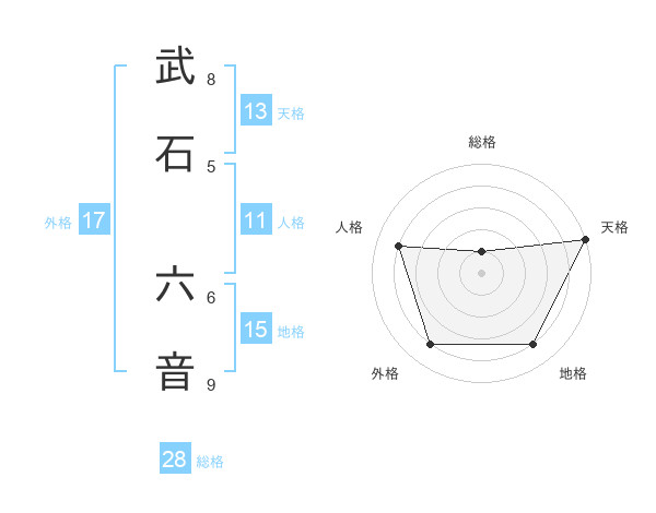 武石 六音さんを姓名の画数から五運を鑑定