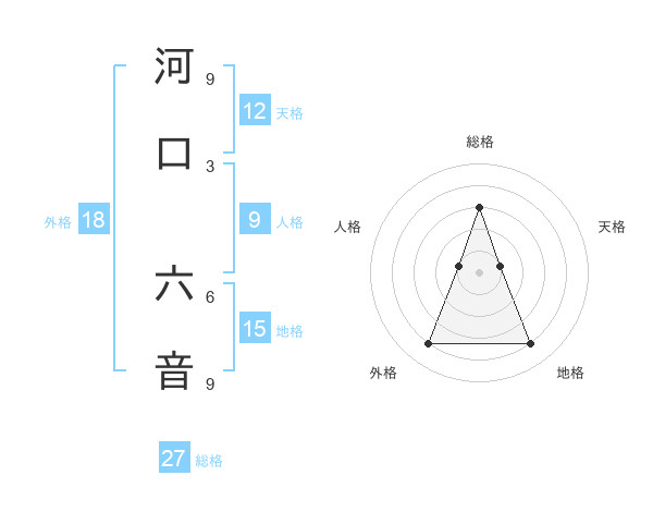 河口 六音さんの総格は27画の3点!