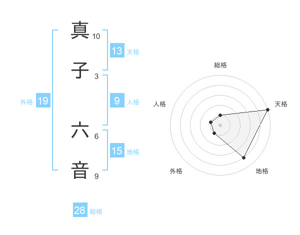 真子 六音さんの天格は13画の5点!