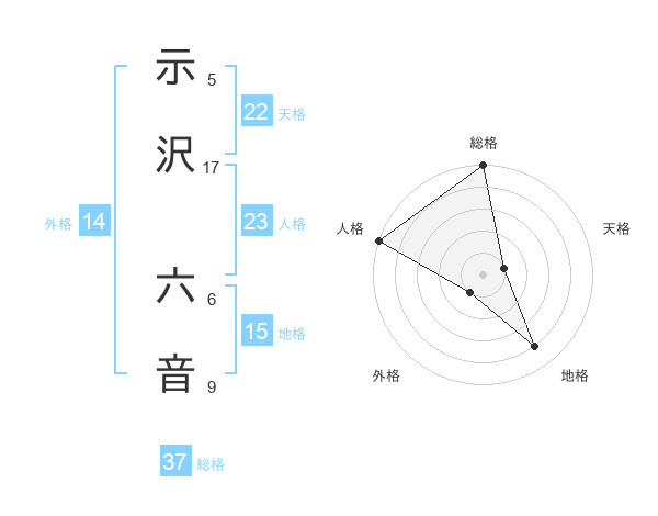 示沢 六音さんの総格は37画の5点!