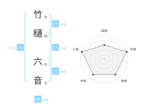 竹樋 六音さんの天格は21画の5点!