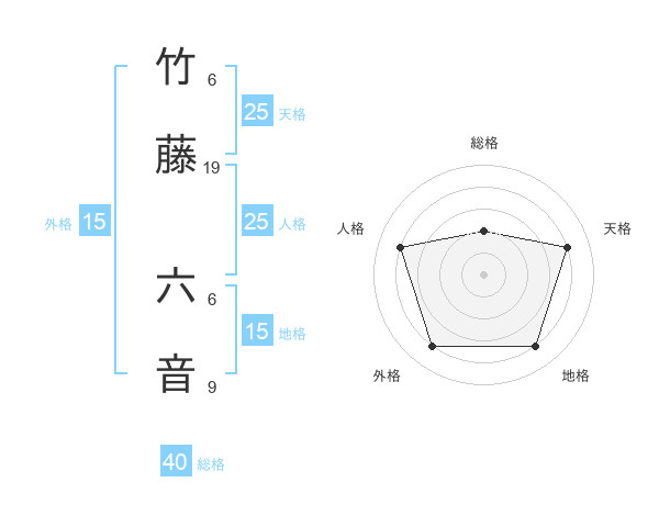 竹藤 六音さんの総格は40画の2点!
