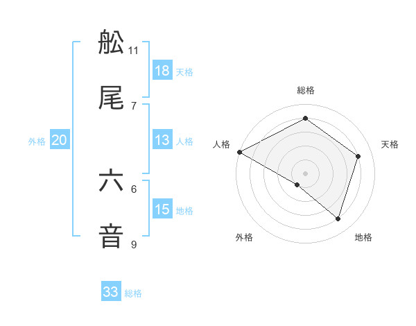 舩尾 六音さんを姓名の画数から五運を鑑定