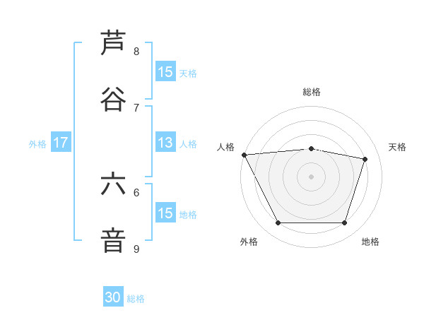 芦谷 六音さんを姓名の画数から五運を鑑定