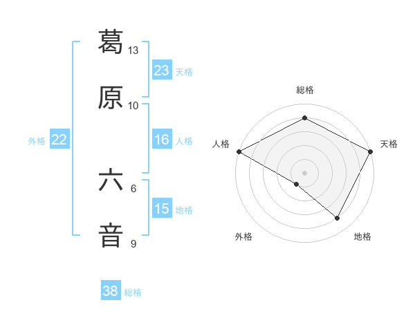 葛原 六音さんの外格は22画の1点!