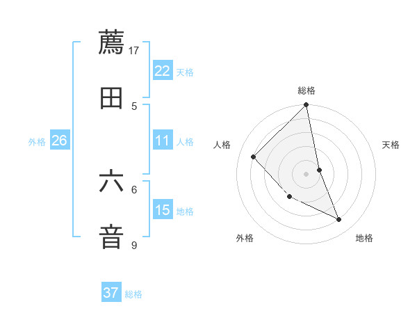 薦田 六音さんの外格は26画の2点!