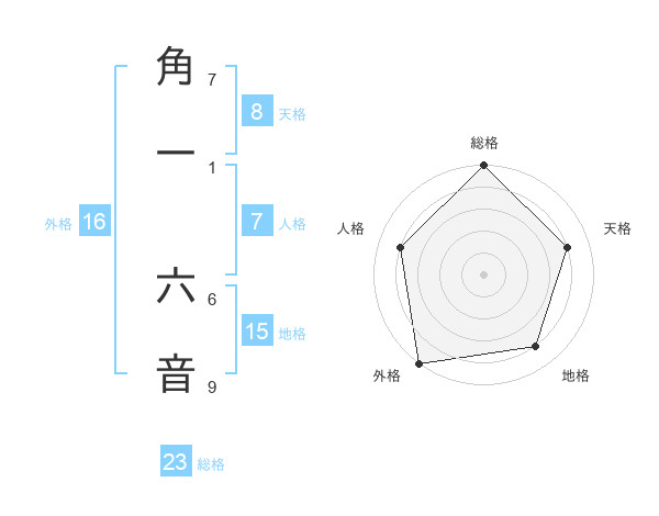 角一 六音さんの外格は16画の5点!