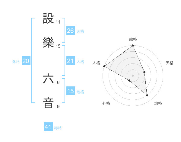 設樂 六音さんの外格は20画の1点!