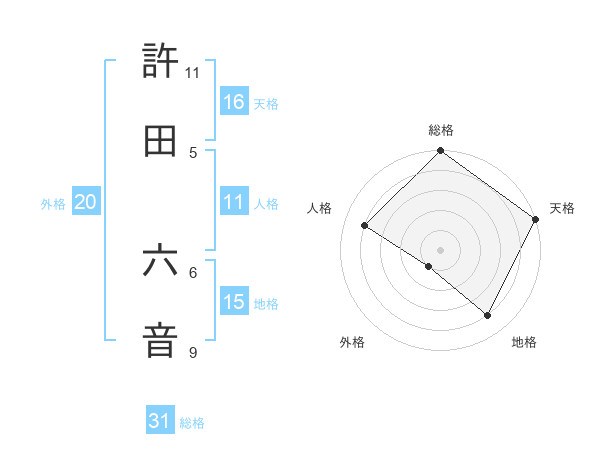 許田 六音さんの天格は16画の5点!