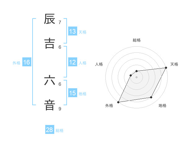 辰吉 六音さんの天格は13画の5点!
