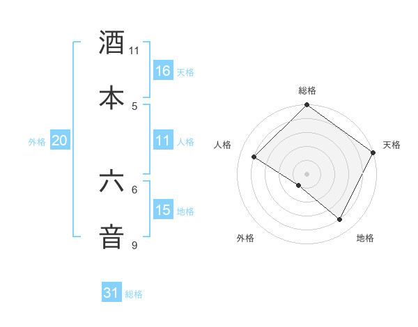 酒本 六音さんの総格は31画の5点!