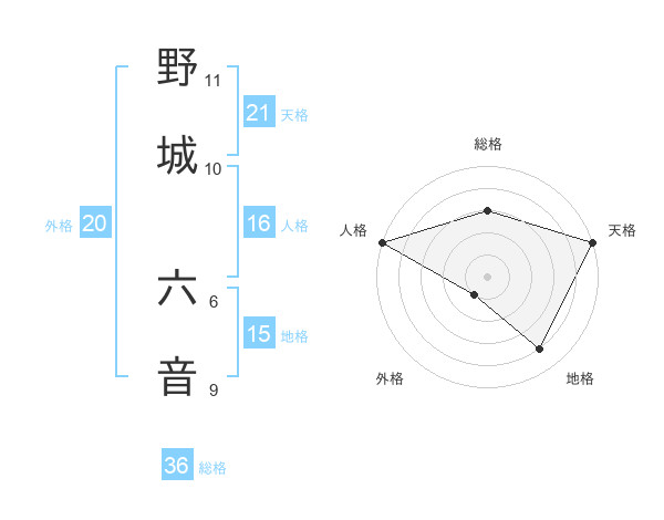 野城 六音さんの天格は21画の5点!
