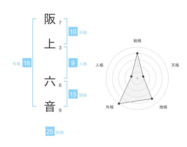 阪上 六音さんの外格は16画の5点!