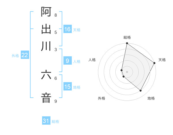 阿出川 六音さんを姓名の画数から五運を鑑定