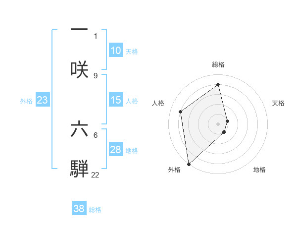 一咲 六騨さんの総格は38画の4点!