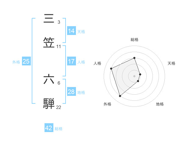 三笠 六騨さんを姓名の画数から五運を鑑定