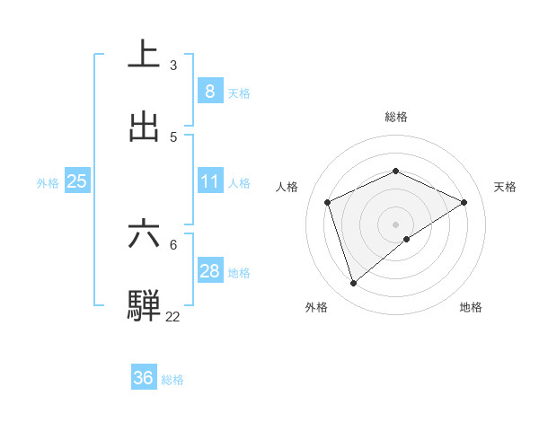 上出 六騨さんの地格は28画の1点!