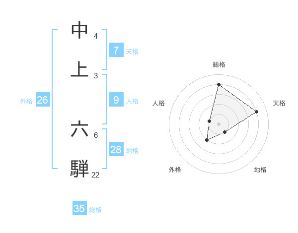 中上 六騨さんの総格は35画の4点!