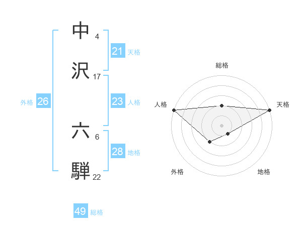 中沢 六騨さんの天格は21画の5点!