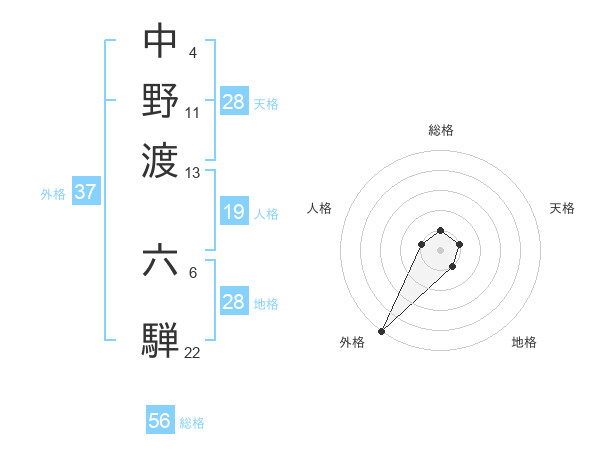 中野渡 六騨さんを姓名の画数から五運を鑑定