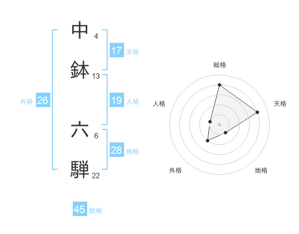 中鉢 六騨さんの総格は45画の4点!