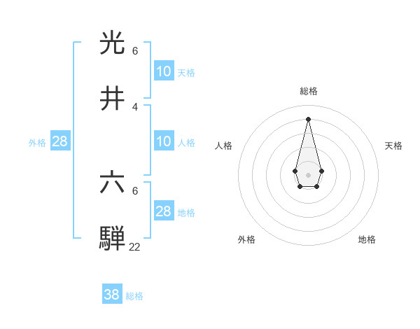 光井 六騨さんの総格は38画の4点!