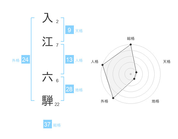 入江 六騨さんの総格は37画の5点!