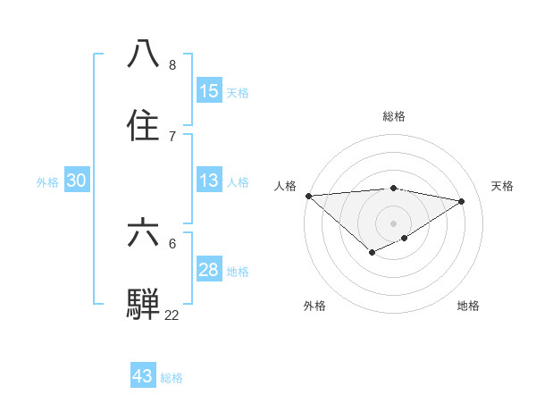 八住 六騨さんの人格は13画の5点!