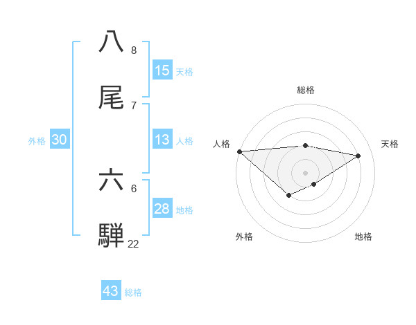 八尾 六騨さんを姓名の画数から五運を鑑定