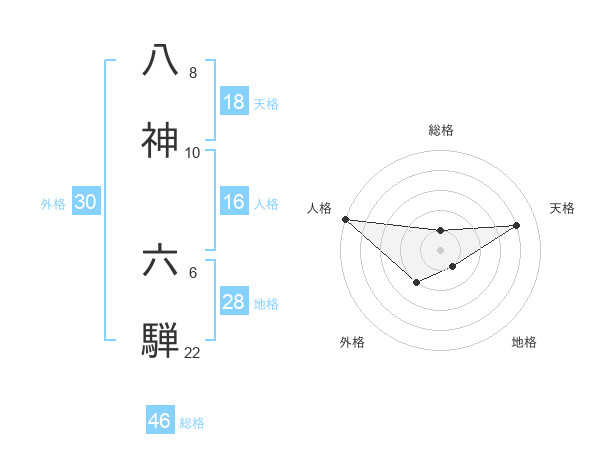 八神 六騨さんを姓名の画数から五運を鑑定