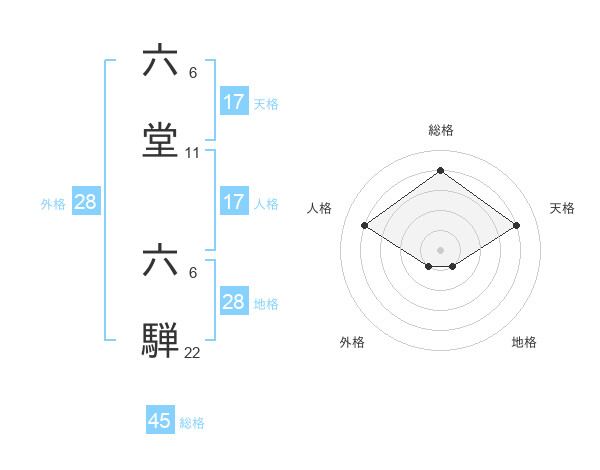 六堂 六騨さんの総格は45画の4点!