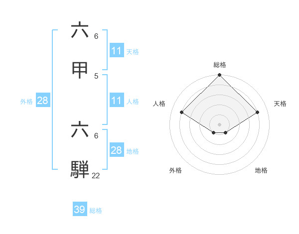 六甲 六騨さんを姓名の画数から五運を鑑定