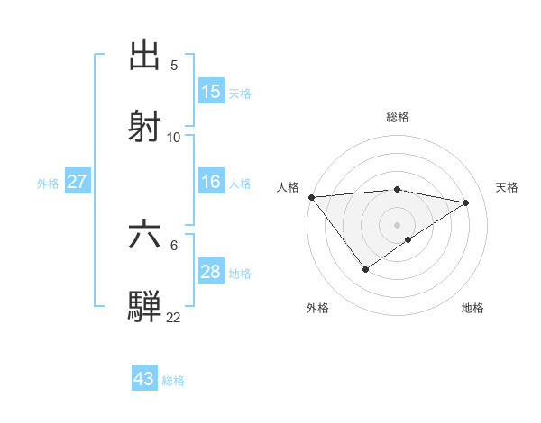 出射 六騨さんの総格は43画の2点!
