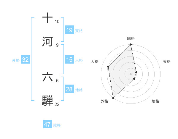 十河 六騨さんの総格は47画の5点!