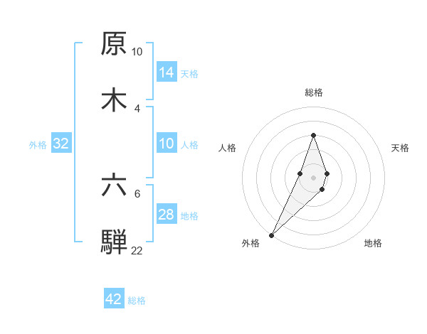 原木 六騨さんの総格は42画の3点!