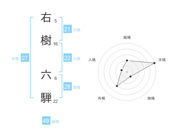 右樹 六騨さんの総格は49画の2点!