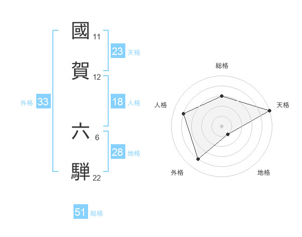 國賀 六騨さんを姓名の画数から五運を鑑定