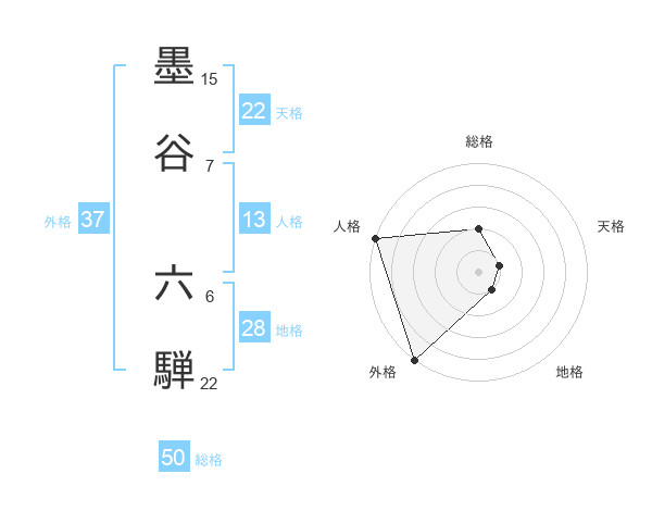 墨谷 六騨さんを姓名の画数から五運を鑑定