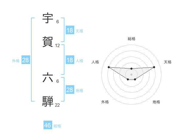 宇賀 六騨さんの総格は46画の1点!