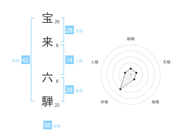 宝来 六騨さんの総格は56画の1点!
