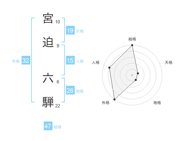 宮迫 六騨さんの総格は47画の5点!