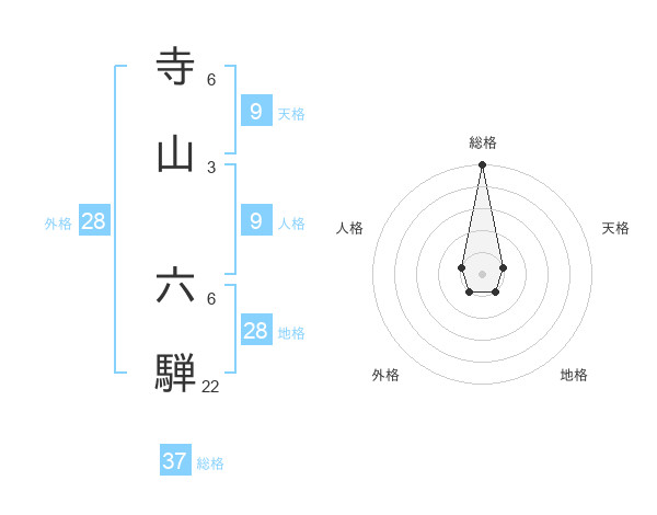 寺山 六騨さんを姓名の画数から五運を鑑定