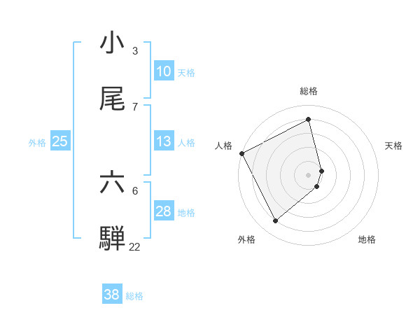 小尾 六騨さんの総格は38画の4点!